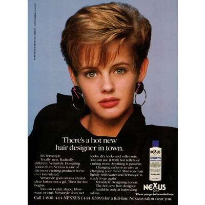 Jheri Redding proudly introduces the newest Nexxus product as Versastyle by taking out color print ads in magazines across the country. It can only be found in hair salons. You need a beauty license to purchase it. It is advertised as a styling agent for all hair types.